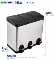 5. Dimensiones: altura 49 cm, ancho 60 cm, profundidad 30 cm, capacidad 3x15 litros.