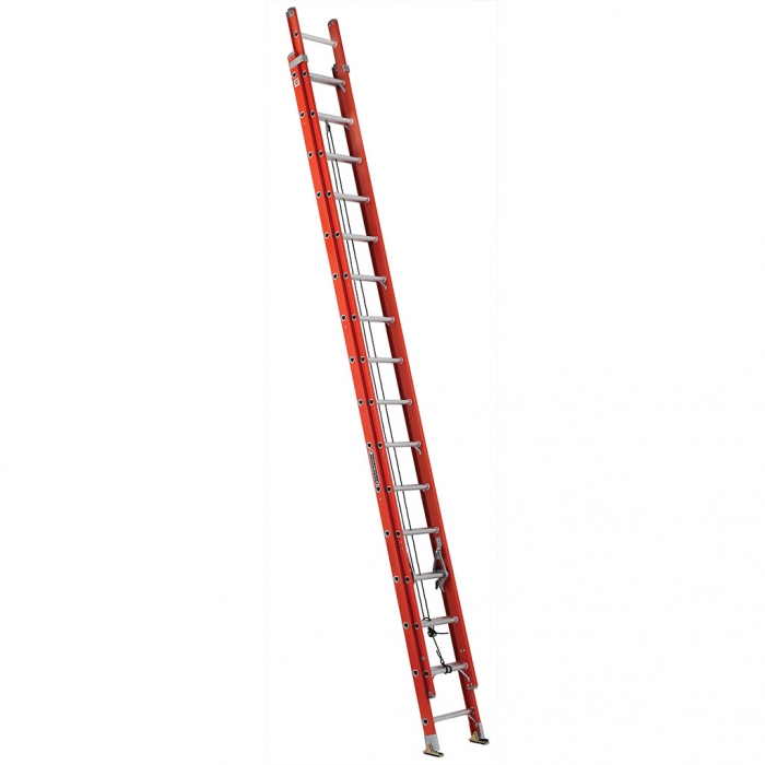 Escalera de extensión de fibra de vidrio con peldaño en "D" de 32 pies de altura y capacidad de carga 225 Kg. Tipo IA